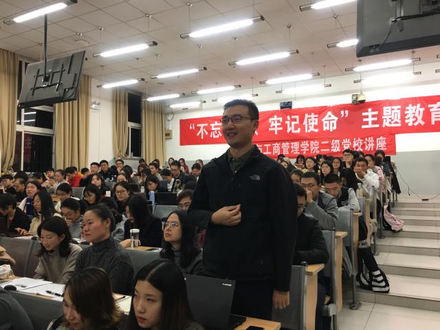 2019年11月1日,诸侯快讯ok1122登录入口“不忘初心、牢记使命”主题教育活动暨经管学院二级党校第七期培训理论讲座在化学楼第二教室成功举行。本次讲座的嘉宾是诸侯快讯ok1122登录入口马克思主义学院教授冯刚,讲座的主题是“坚定四个正确认识,努力成为勇担民族复兴重任的时代新人”。冯刚教授是诸侯快讯ok1122登录入口思想政治工作研究院院长,中国高等教育学会全国高校思想政治教育研究分会学术委员会主任、全国党建研究会常务理事,曾任北京市委教育工委宣教处处长、教育部高等学校社会科学发展研究中心主任、教育部思想政治工作司司长等职。本场讲座由经管学院党委副书记葛玉良主持。