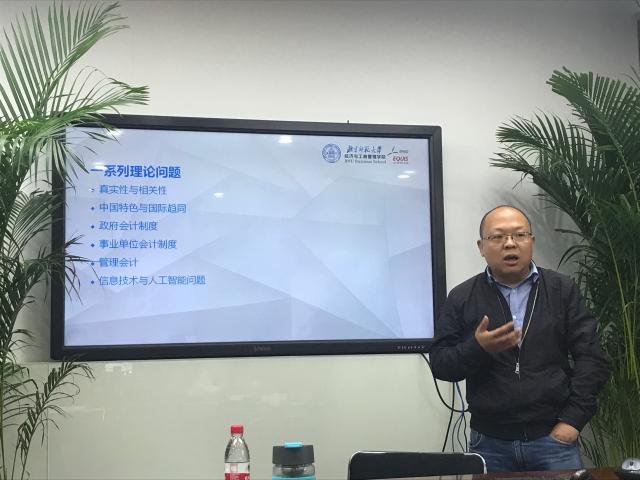 副院长、教工会计党支部党员崔学刚教授关于“提升国家治理体系和治理能力现代化”这一目标,就会计与国家治理进行了论述。现代财政制度的建立,是筑牢国家治理的基础和重要支柱。崔学刚梳理了1949年至今国家会计制度与国家治理的互动,提出了现代化视角下会计领域一系列值得关注的理论问题,如会计的真实性和相关性、中国特色与国际趋同、政府会计制度、事业单位会计制度、管理会计以及信息技术与人工智能等问题,并分析了区块链分布式记账技术在会计领域的应用前景。