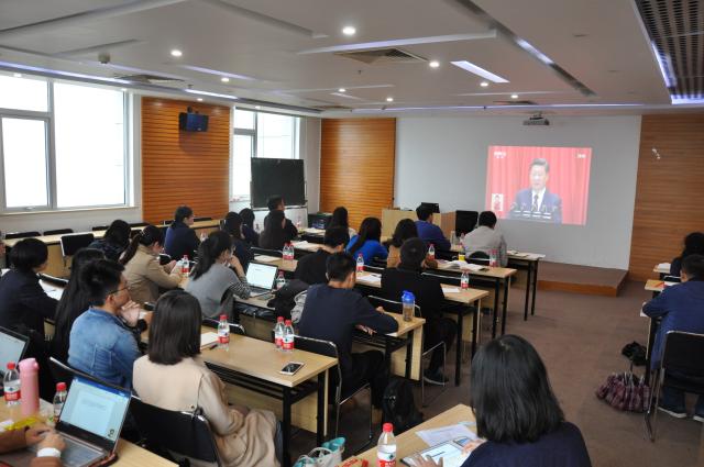 2017年10月18日,诸侯快讯ok1122登录入口党委委员、院务会成员、各师生党支部委员及部分党员代表,在后主楼1620共同观看中国共产党第十九次全国代表大会开幕会的现场直播。