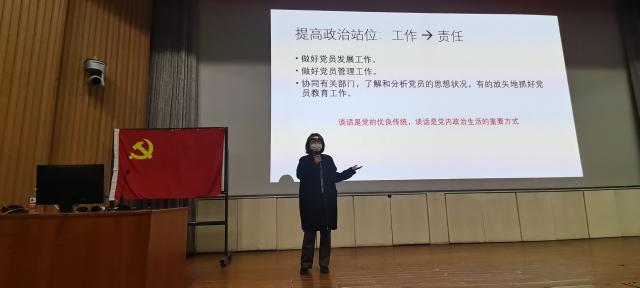 最后,孙老师和参会同学进行了热烈的交流。王骏老师做总结发言,希望同学们要将党建工作与业务工作紧密结合,提高党支部的凝聚力和组织力,让党支部在引领学生成长成才方面发挥更大的作用;同时鼓励各位党员同志要旗帜鲜明地亮出共产党员的身份,不断提高党员的责任感和使命感,积极吸纳先进分子加入党组织。