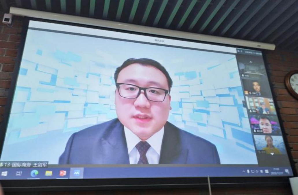 2013级MIB王剑军作为校友代表发言。他先分享了自己的职业发展之路,表示职业发展联盟的成立可以整合校友资源,促进MIB专业发展的同时可以帮助在校生解惑职场。接着,他建议2020级在校生要提升职业技能,比如语言能力的培养和办公软件的应用等。最后,针对在校生此前关于实习方面的疑惑,他鼓励在校生要多多实习,在实习中探索自己未来的职业方向,告诫在校生在实习过程中要以正式员工的标准要求自己,体验真正的职场生活。